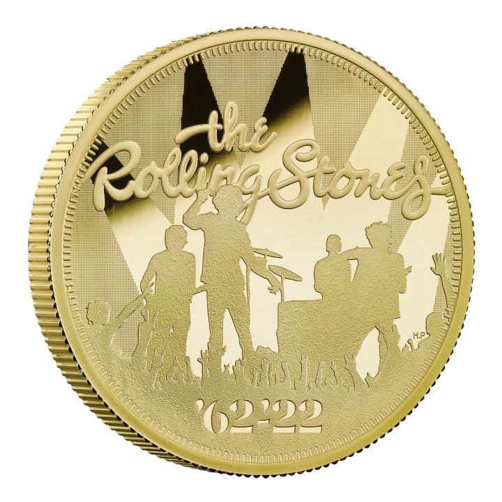 Reverse the coin depicts the band "The Rolling Stones" in concert and the inscriptions "THE ROLLING STONES" and " '62'22 ". Hannah Phizacklea is responsible for the reverse design.