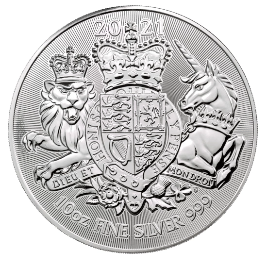 The Royal Arms to bulionowa moneta, która idealnie urozmaica każde inwestycyjne portfolio. Ta srebrna moneta jest bita z czystego kruszcu próby Ag.999, o wadze dziesięciu uncji trojańskich oraz średnicy liczącej 89 mm. Za jej emisje odpowiada ceniony oraz zaufany producent metali szlachetnych – The Royal Mint. The Royal Arms czyli królewskie herby jest walorem posiadającym gwarancję rządu Wielkiej Brytanii oraz pełniącym role oficjalnego środka płatniczego na terenie kraju emitenta.Co więcej, wizerunek Królewskich Herbów jest ściśle związany z symbolicznym ukazaniem siły oraz majestatu panującej monarchii w Wielkiej Brytanii. Należy również dodać to, iż pojedyncze monety są wysyłane w ochronnych kapslach. Rewers srebrnej monety przedstawia wizerunek zmodyfikowanego herbu Wielkiej Brytanii. Inspiracją dla autora -Timothy'ego Noada, przy tworzeniu nowoczesnego wizerunku monety stanowił symboliczny projekt Royal Arms autorstwa Erica Sewella. Na awersie uwieczniono portret Królowej Elżbiety II w koronie oraz nominał monety (£10).Do you need help? Do you have any questions?Ask a question and we'll respond promptly, publishing the most interesting questions and answers for others.