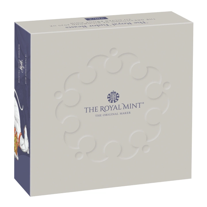 The Royal Tudor Beasts: The Greyhound of Richmond 2 oz Silver 2025 Proof is the eighth release in the series The Royal Tudor Beasts. The coin showcases the rich heraldry of the Tudor dynasty, referencing emblems visible throughout Great Britain, as well as sculptures that adorn the entrance to Hampton Court Palace. Henry VIII used coats of arms as a powerful tool of visual communication, emphasizing his royal heritage and unquestionable rights to the throne.