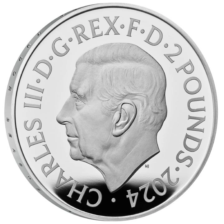 The obverse shows the likeness of King Charles III of Great Britain and the denomination and year, designed by Martin Jennings. The Rewers depicts one of the beasts of the Tudor Kingdom - the Tudor Dragon - and the inscription "TUDOR DRAGON" "2024". The reverse was designed by David Lawrence.