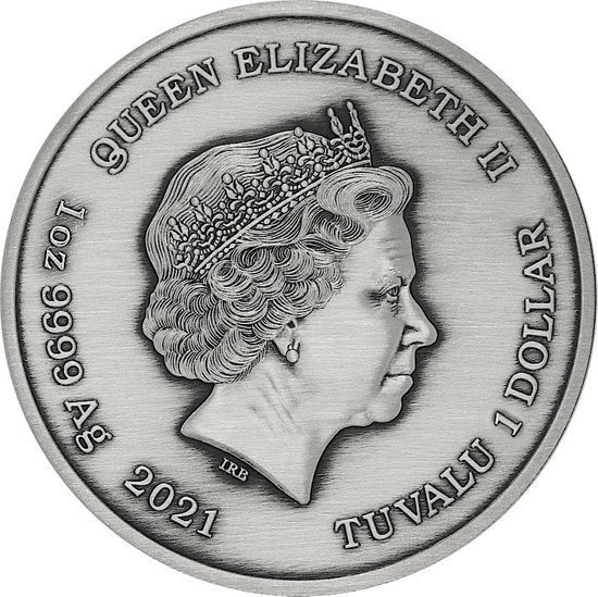 Tuvalu: Bogowie Olimpu - Hades 1 uncja Srebra 2021 Antiqued Coin