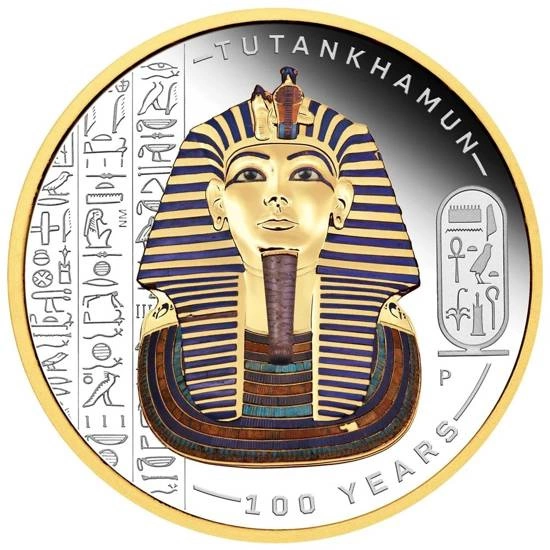 A unique Tuvalu product: the Tutankhamun Discovery 100th Anniversary coloured, gold-plated 2 oz Silver 2022 Proof is an interesting numismatic offering depicting the pharaoh Tutankhamun. He reigned from 1333 to 1323 BC and was the pharaoh of the 18th dynasty. The 2022 coin celebrates the 100th anniversary of the discovery of the pharaoh's tomb, which took place in 1922 by English archaeologist Howard Carter. The investment proposition comes from the world-renowned Australian mint, The Perth Mint.The coin is made of pure Ag.9999 bullion, weighing two troy ounces and with a maximum diameter of 50.8mm. The mintage of the coin is 2,000 pieces. In addition, the product has been minted in colour, in proof standard and has gold-plated elements. The silver numismatic coin is full legal tender in the issuing country and is guaranteed by the Government of Tuvalu. The coin comes in individual original packaging with an accompanying certificate of authenticity. The Averse shows a portrait of Queen Elizabeth II. The whole is surrounded by the inscription "QUEEN ELIZABETH II TUVALU" and information on the weight, purity of the bullion, year of issue and face value of the coin. The obverse was designed by Ian Rank-Broadley.Rewers depict the pharaoh Tutankhamun. The reverse also features the inscription 'TUTANKHAMUN', '100 YEARS' and the mint mark 'P' indicating that the product was made by The Perth Mint. The designer of the reverse was Natasha Muhl.Do you need help? Do you have any questions?Ask a question and we'll respond promptly, publishing the most interesting questions and answers for others.