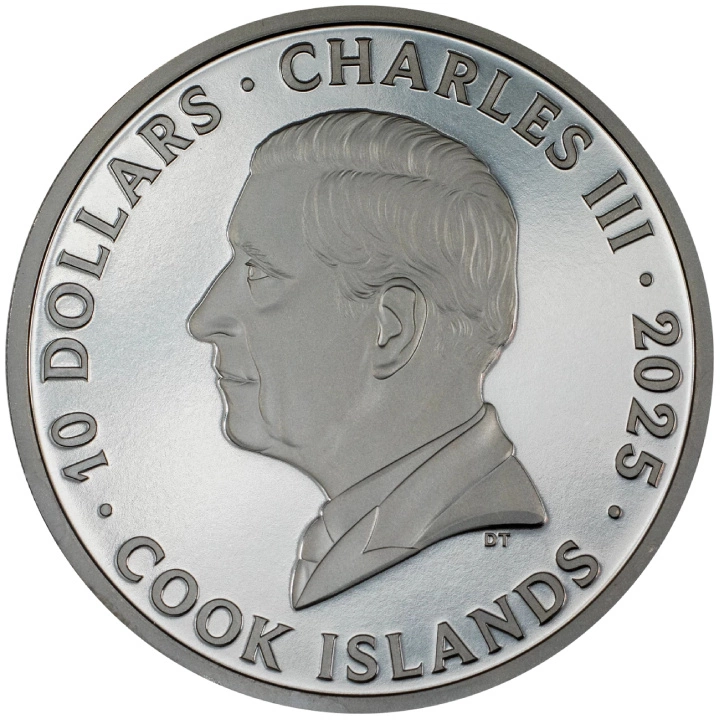 La moneda de plata está acuñada en plata pura de .999 de finura, con un peso de 2 onzas troy y un diámetro de 38,61 mm, en acabado black proof. La tirada está limitada a 999 piezas. El producto es moneda de curso legal en las Islas Cook.