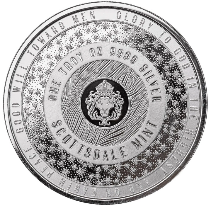 Anverso: Presenta el característico león – símbolo de Scottsdale Mint – junto con los datos sobre el peso y la pureza del metal.