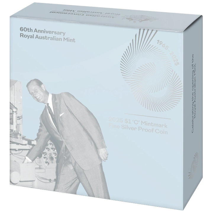 El 60 Aniversario de la Royal Australian $1 Plata 2025 Proof "C" Mintmark es una moneda de plata única que conmemora seis décadas de la Royal Australian Mint, un símbolo de innovación y precisión en la acuñación. Esta moneda es una excelente opción tanto para coleccionistas como para inversores que buscan piezas únicas de gran valor histórico.