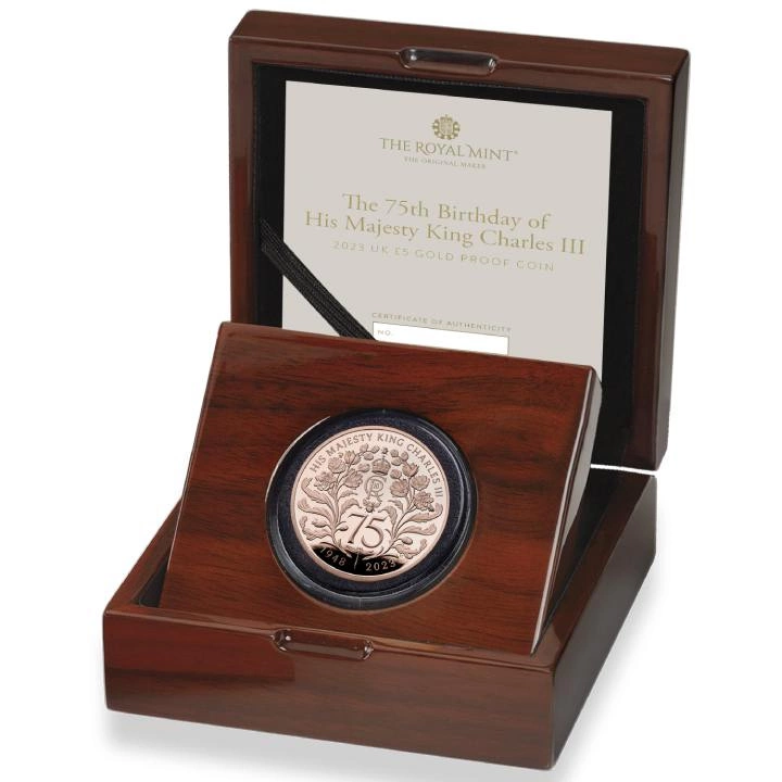 75º Aniversario de Su Majestad el Rey Carlos III £5 Oro 2023 Proof