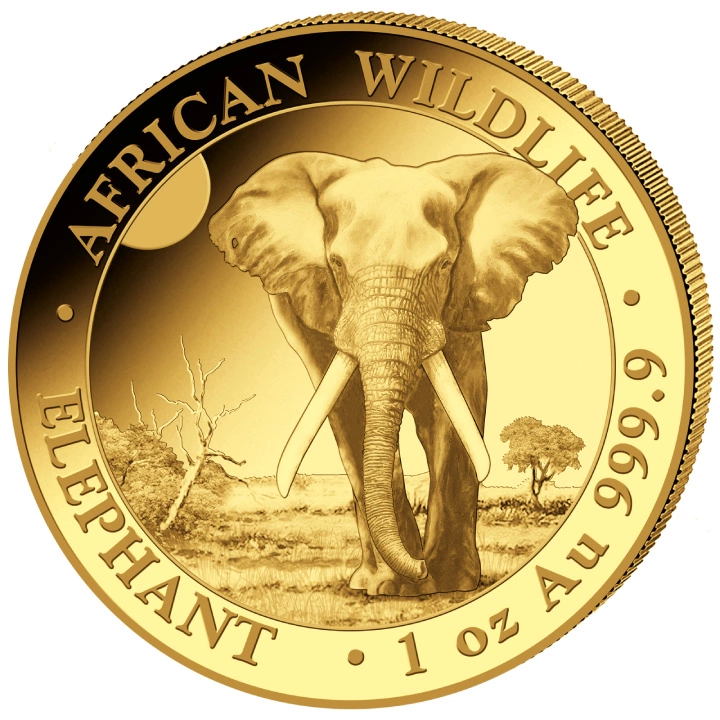 Además, las monedas African Wildlife: Somali Elephant, producidas después de 2004, actúan como medio de pago de pleno derecho y están garantizadas por el gobierno somalí en cuanto a la legalidad, pureza del lingote y origen del metal.