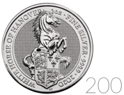 El reverso muestra una de las 10 Bestias de la Reina: el Caballo Blanco de Hannover. Además, en el reverso figura información sobre el peso, la pureza del lingote y el año de acuñación. El reverso ha sido diseñado por Jody Clark.
