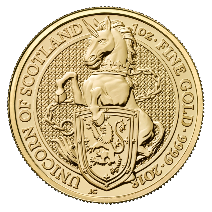 Bestias de la Reina: Unicornio de Escocia 1 oz Oro 2018
