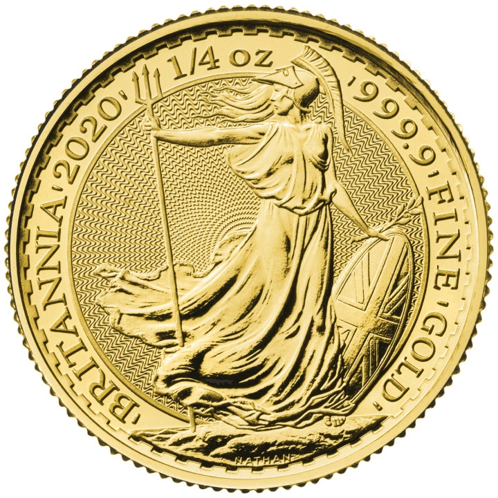 El reverso representa la figura tradicional de Britannia, armada con un tridente y un escudo. Además, en él figura información sobre la pureza del lingote y el peso de la moneda. .