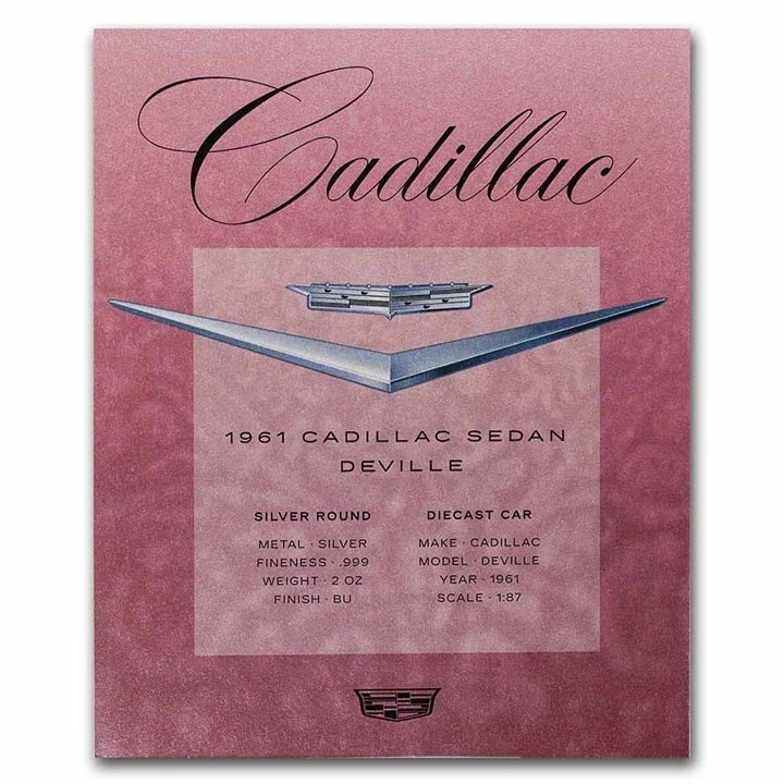 El anverso de la parte central de la moneda muestra la inscripción en color "CADILLAC" y el logotipo de la marca. En el anverso también figura información sobre el peso y la pureza del lingote.