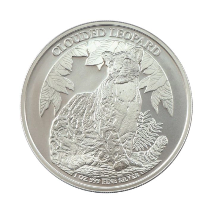 En el rostro de la moneda de plata figura un leopardo, la inscripción "CLOUDED LEOPARD", así como el peso y la prueba del lingote. .