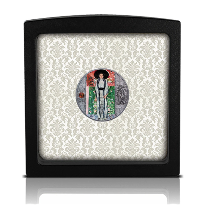 El reverso de la moneda muestra una reproducción coloreada de la obra de Gustav Klimt Retrato de Adele Bloch Bauer con una imagen de la amiga de Adele y la inscripción "GUSTAV KLIMT".