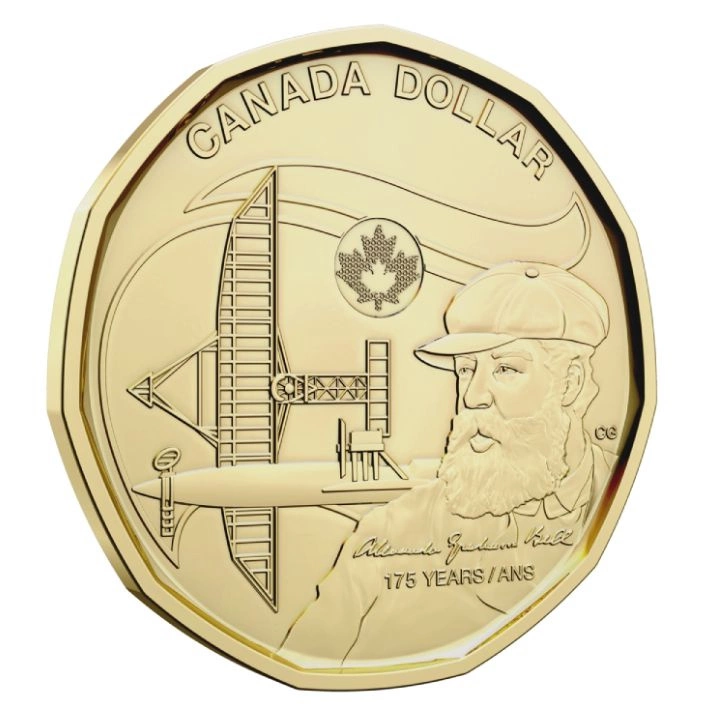 El reverso muestra un retrato de Alexander Graham Bell e incluye ilustraciones del avión "Silver Dart" y del hidrodeslizador "HD-4". El reverso también muestra la denominación y el país de emisión. El reverso fue diseñado por Chris Gorey.