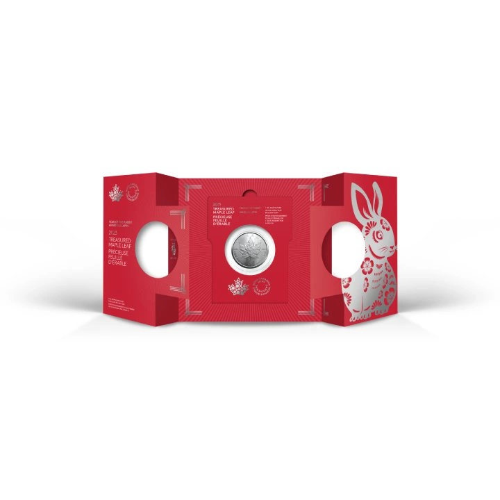 Cada pieza, con el símbolo botánico de Canadá, está acuñada en plata de ley Ag.9999 pura, pesa una onza troy y mide 38 mm de diámetro. Además, cada hoja de plata está garantizada por el Gobierno de Canadá y tiene curso legal en el país emisor. Walter Otto es el responsable del diseño de la moneda de plata, que ha permanecido inalterado a lo largo de los años. El producto se entrega en su embalaje original con la inscripción "Año del Conejo".