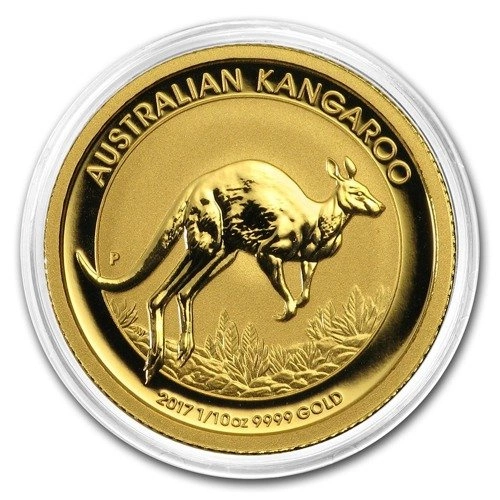 Reverso: está decorado, sujeto a modificaciones cada año, con la imagen de un canguro. En 2016, se trata de un canguro de pie que observa su entorno, seguido de los contornos de otro canguro. El reverso también contiene información sobre el peso, el año de emisión y la muestra de oro en la que se acuñó la moneda.