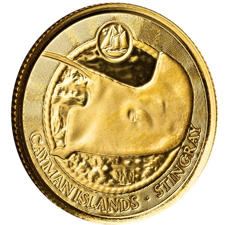 Moneta Cayman Islands: Stingray 1/10 uncji Złota 2024 Prooflike to produkt z serii "Cayman Sea Life". Stingray to gatunek ryby morskiej z rodziny płaszczek. Charakteryzuje się płaskim, okrągłym ciałem, pokrytym gładką skórą, oraz charakterystycznym ogonem zakończonym żądłem, które może być jadowite u niektórych gatunków. Stingray zamieszkuje ciepłe wody oceaniczne i przybrzeżne.