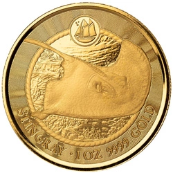 El Revés de la moneda muestra una raya. El reverso muestra la inscripción «STINGRAY» y el peso y la pureza del lingote.