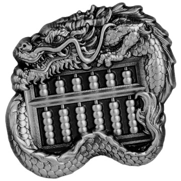 Chad Símbolos de la Fortuna: Dragón Chino Ábaco 1 oz Plata 2023 Alto Relieve Antiqued Coin