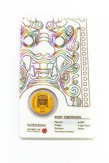 La medalla de oro producida en Corea del Sur por KOMSCO contiene un 99,9% de oro y tiene un peso de 1/10 onzas.
