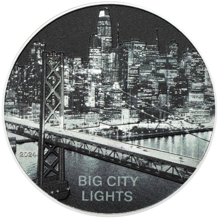 Revés muestra la ciudad de San Francisco. En el reverso también figura el año y la inscripción «BIG CITY LIGHTS».
