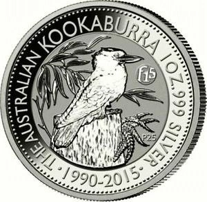 El reverso muestra una imagen de Kookaburra, con la marca privada F15 a la derecha. Debajo aparece información sobre el peso, la prueba y el año de emisión de la moneda, y encima figura la inscripción AUSTRALIAN KOOKABURRA.