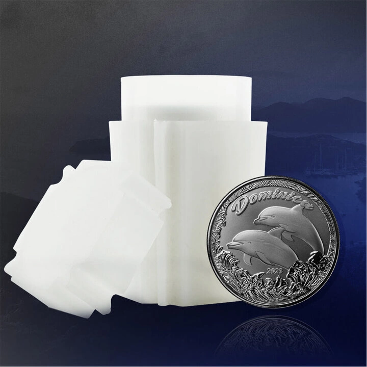 La Moneda de Dominica: Delfín de 1 oz Plata 2023 Prooflike es un producto único que representa delfines, mamíferos marinos. Tienen aletas distintivas. Los delfines viven en grupos, conocidos como manadas, y se comunican entre sí mediante complejos sonidos y señales. El producto pertenece a la serie 8 del Caribe Oriental.La moneda fue acuñada en plata de ley Ag.999 pura, pesa una onza troy y mide 39 mm de diámetro. La moneda de plata fue producida por la Casa de la Moneda de Scottsdale, en una tirada baja de sólo 25.000 piezas. Tiene curso legal en los territorios de Anguila y Granada y está garantizada por el Banco Central del Caribe Oriental.