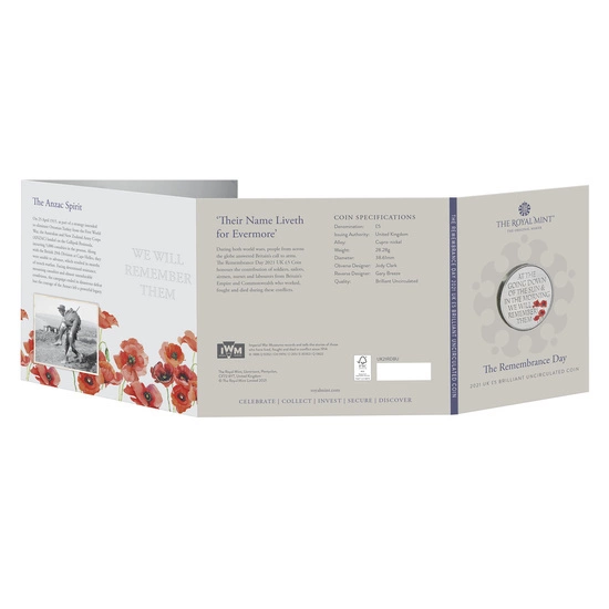 Los anversos muestran las características amapolas rojas coloreadas y la inscripción "AT THE GOING DOWN OF THE SUN & IN THE MORNING WE WILL REMEMBER THEN" (A LA PUESTA DEL SOL Y POR LA MAÑANA RECORDAREMOS ENTONCES). El reverso fue diseñado por Gary Breeze.
