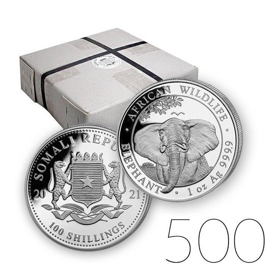 Fauna africana: Elefante somalí 1 oz Plata 2021 PAQUETE DE 500 BOLSITAS