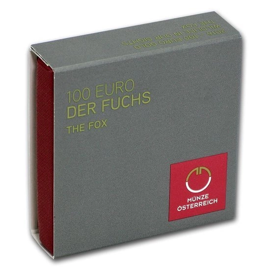 La moneda de oro "Fox 100 Euro 2016 Proof" está acuñada a partir de lingotes de 986 Au, siendo el peso del oro contenido de 16g, mientras que el peso total de la moneda es de 16,23g. La excelente ceca europea Austrian Mint es la responsable de la emisión limitada de la cuarta pieza de la serie Wildlife in our Sights, limitada a 30.000 piezas. También cabe mencionar que la moneda de oro Wildlife in our Sights: Lis 100 Euro 2016 Proof es un producto garantizado por el gobierno austriaco y tiene curso legal en el país emisor. Toda la moneda se entrega en un estuche exclusivo con un certificado de autenticidad numerado. .