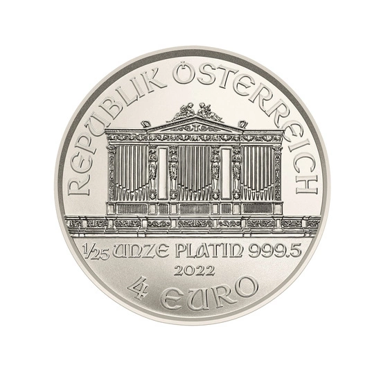 El anverso está decorado con el legendario órgano de la Filarmónica de Viena. Además, en el anverso figura información sobre el valor facial de la moneda, su peso y el año de emisión.