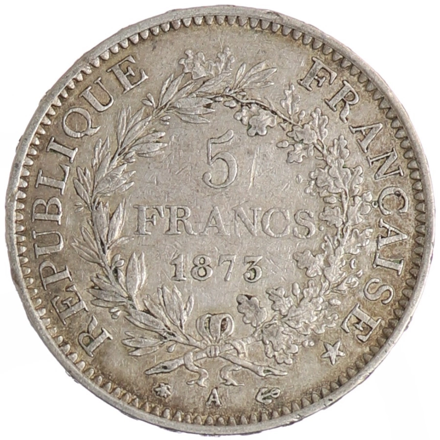 Un papel especial lo ocupa el lema “Liberté, Égalité, Fraternité” (“Libertad, Igualdad, Fraternidad”), que aparece en la mayoría de las monedas francesas, incluidas las de 5 francos. Este es uno de los lemas más significativos de la historia europea moderna, formado durante la Revolución Francesa y aún hoy considerado como el fundamento de la República Francesa. La inscripción simboliza valores universales – la libertad individual, la igualdad ante la ley y la fraternidad social – otorgando a cada moneda un significado que trasciende su valor material.