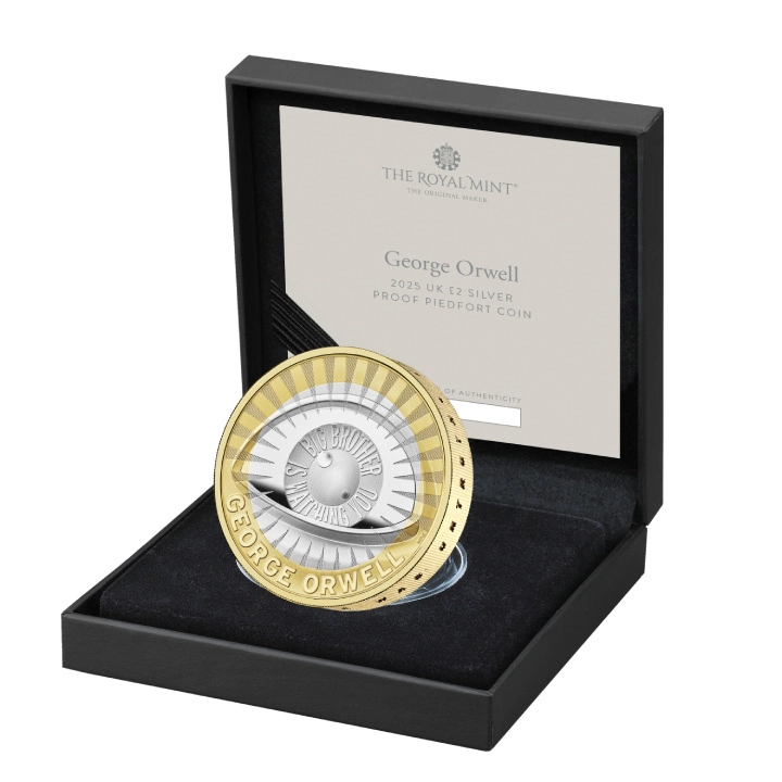 George Orwell £2 pozłacany Srebro 2025 Proof Piedfort