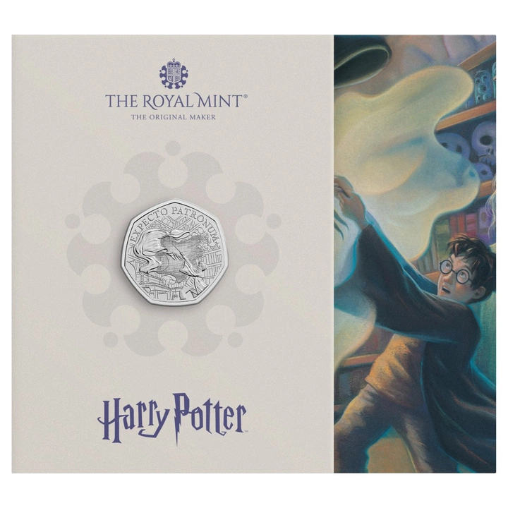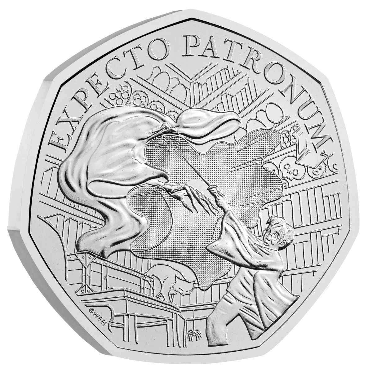 Acuñada en calidad Brilliant Uncirculated con una aleación de cobre y níquel, esta moneda está oficialmente licenciada por Warner Bros. El diseño estilizado fue realizado por Bella Biggs de The Royal Mint, y captura de manera artística el triunfo emocional del hechizo. Es la última entrega de una serie dedicada a los momentos más icónicos del mundo mágico.