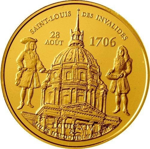 Recortes: está decorado con una imagen de la Iglesia de los Inválidos y la fecha de acuñación.