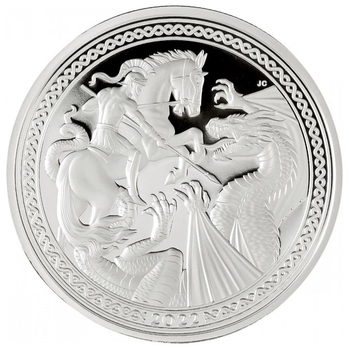 Los reversos muestran una imagen de San Jorge luchando contra un dragón y el borde celta de la moneda. El diseñador también fue Jody Clark. .