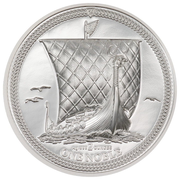 El reverso muestra un barco vikingo.a toda vela. En el reverso también figura información sobre el peso, la denominación, el año y la pureza del lingote.
