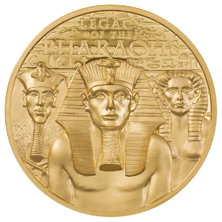 La moneda alude a la cultura del antiguo Egipto, que refleja la grandeza y el esplendor de los faraones y las maravillas arquitectónicas construidas en su honor.