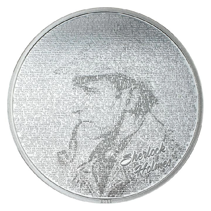 Revés muestra un retrato de Sherlock Holmes El reverso también contiene la inscripción "SHERLOCK HOLMES".