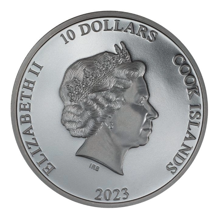 La moneda de plata fue acuñada en plata pura Ag.999, con un peso de 2 onzas troy, 38,61 mm de diámetro, en negro proof y alto relieve. La acuñación de la moneda es de 999 piezas. Tiene curso legal en las Islas Cook.