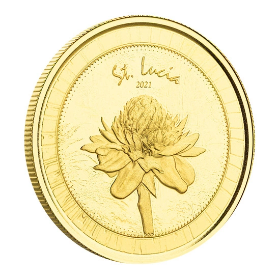 La moneda fue acuñada en lingotes de oro puro Au.9999, pesa una onza troy y mide 32 mm de diámetro. La moneda de oro fue producida por la Scottsdale Mint, en una tirada baja de sólo 2.500 piezas. Está garantizada y tiene curso legal en los territorios de los ocho países del Banco Central del Caribe Oriental.