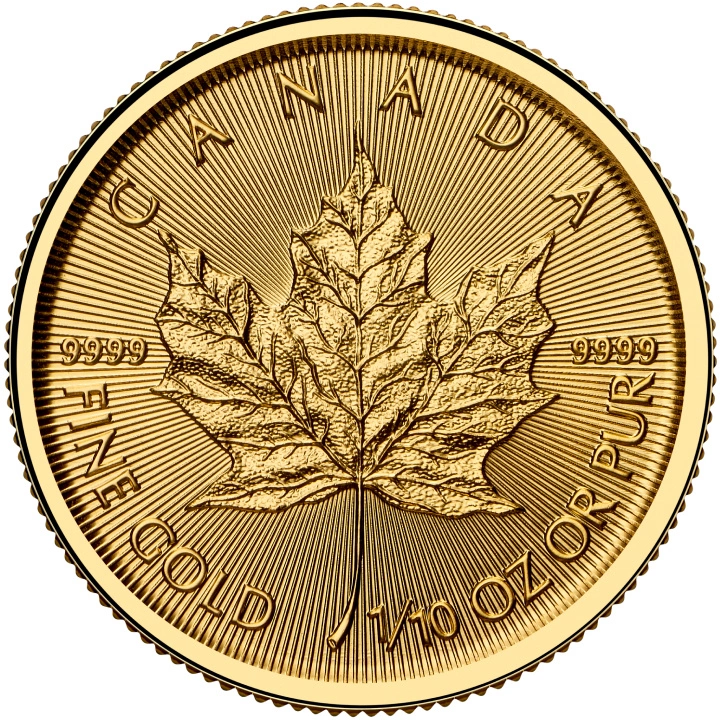 La Hoja de Arce de Oro canadiense se fabricó con lingotes de Au.9999 puro, pesaba 1/10 de onza troy y medía 16 mm de diámetro. Además, dicha hoja está garantizada por el Gobierno de Canadá y tiene plena curso legal en el país emisor.