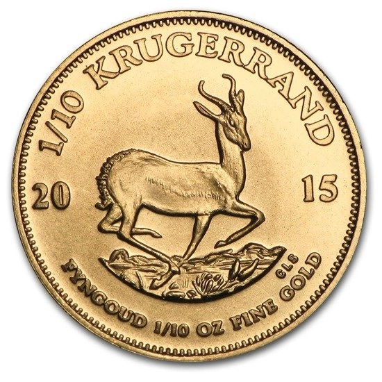 El reverso representa un antílope springbok, símbolo de Sudáfrica. A ambos lados hay números que representan el año de acuñación, y debajo figura la inscripción "Fyngoud 1/10oz fine gold", que indica el contenido de oro puro.Fabricante