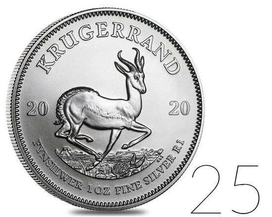 Krugerrand 1 Onza Plata 2020 PAQUETE DE 25 FICHAS