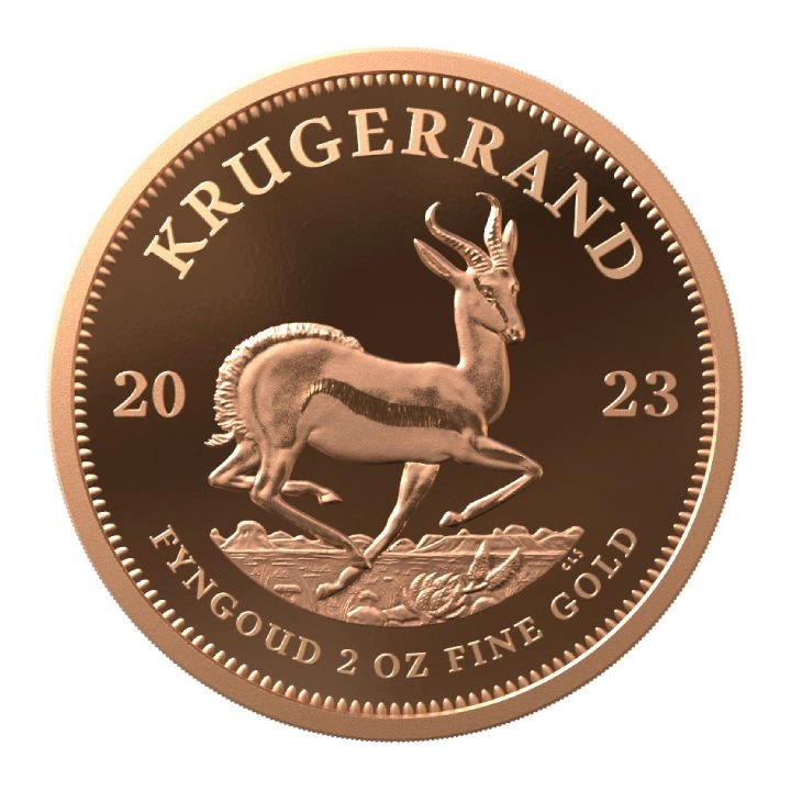 Los anversos representan un antílope springbok, el símbolo de Sudáfrica. A ambos lados hay números que representan el año de acuñación, con la inscripción "Fyngoud 2oz fine gold" debajo, que indica el contenido de oro puro.