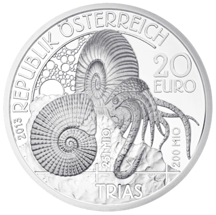 La moneda de plata, que representa un animal representativo del Triásico, está acuñada en plata de ley con un peso total de 20 g, de los cuales 18 g son de plata pura. El productor europeo de metales preciosos Austrian Mint es el responsable de la emisión limitada de 50 000 piezas de la moneda. La moneda de 2013 también está garantizada por el Gobierno austriaco y tiene curso legal en el país emisor. .