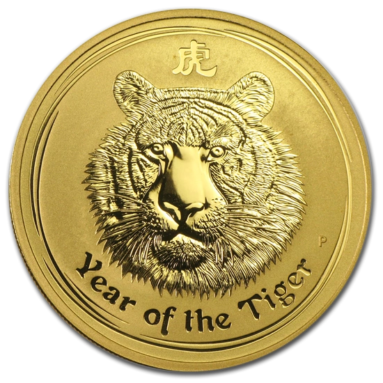 La moneda de lingote del Año del Tigre es una moneda de oro de la serie Lunar II producida en 2010, que representa la tercera entrega de la serie. La moneda de oro de 1 onza está fabricada con lingotes de la máxima pureza, que es 9999.Obsérvese la acuñación limitada de la moneda, que es de 30.000 piezas. La serie Lunar II se inspira en el calendario lunar chino, cuyo origen se remonta aproximadamente al año 2600 a.C.. Este calendario consta de 12 ciclos lunares, cada uno de los cuales representa 12 animales. Las monedas de esta serie son una excelente forma de invertir en metales preciosos. Una moneda de oro con un diseño cuidadosamente elaborado puede resultar atractiva no sólo para los inversores, sino también para quienes aprecian el valor de coleccionista. Las monedas de la serie Lunar aumentan de valor, por lo que no hay que temer una pérdida de capital. El anverso de la moneda del Año del Tigre está decorado con una imagen de la reina Isabel II, también hay información sobre el peso, la fecha de emisión y el país de emisión. El reverso de la moneda de oro en lingotes presenta un diseño del animal del calendario chino..Fabricante