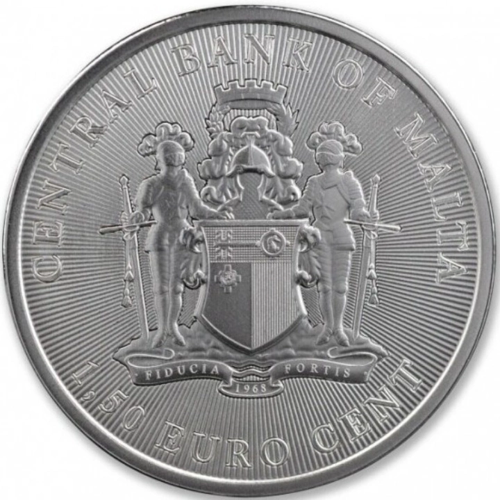 La moneda de plata está acuñada en plata pura con una finura de Ag.9999, pesa 1 onza troy y tiene un diámetro de 39 mm. La moneda fue producida por Germania Mint en nombre del Banco Central de Malta. .