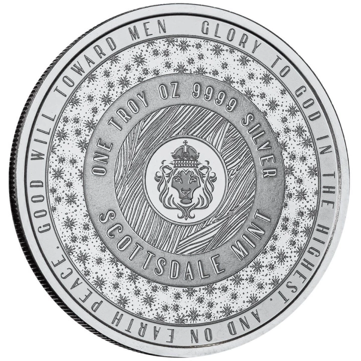 Anverso: Presenta un león – símbolo de Scottsdale Mint – junto con una cita del Evangelio de Lucas 2:14: "Gloria a Dios en las alturas, y en la tierra paz, buena voluntad para con los hombres". También aparecen los datos del peso y la pureza de la plata.