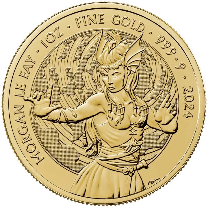 La moneda Mitos y Leyendas: Morgan Le Fay 1 oz Oro 2024 presenta a uno de los personajes de las leyendas artúricas, innumerables leyendas, obras literarias y películas. Desde la época victoriana hasta la literatura estadounidense de los siglos XIX y XX, se la suele representar como una figura villana que a menudo intenta perjudicar a Arturo.La moneda es la tercera y última pieza de la segunda serie Mitos y Leyendas. La moneda está acuñada en lingote de oro puro Au.9999, pesa una onza troy y mide 32,69 mm de diámetro. Además, esta extraordinaria pieza ha sido producida por The Royal Mint. La moneda está garantizada por el gobierno del Reino Unido en cuanto a su legalidad, pureza del lingote y origen del metal, y tiene plena curso legal en el país del emisor.
